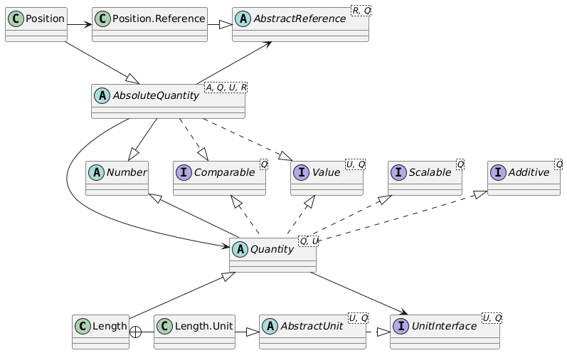 The relation between relative and absolute quantities is sketched in the class diagram below: