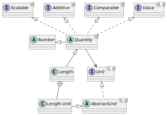 Every quantity in DJUNITS needs a unit. One quantity can be expressed using multiple units. Typically the unit is defined as an inner class of the quantity class. As a standard the name BASE, or SI is used for the default unit and it should be public, static and final.